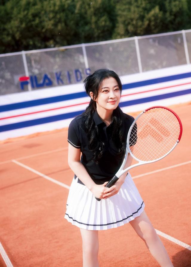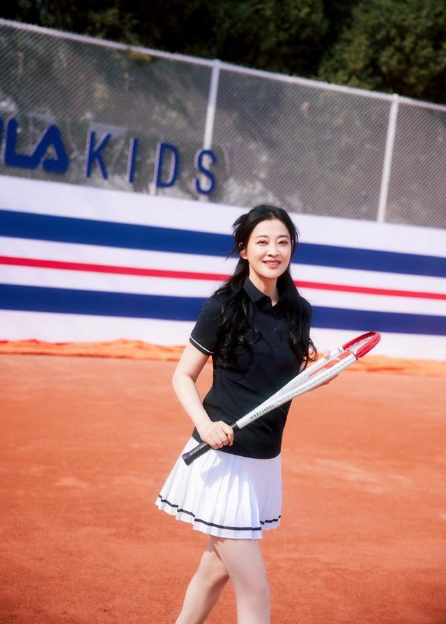 还有这一身网球风造型,更是把 “减龄感” 玩到了极致,梅婷上身一件经典黑色 Polo衫,利落的翻领设计自带干练感,袖口的白边撞色细节呼应了下装的设计,又让简约上衣更有层次,修身不紧绷的剪裁完美贴合身形,藏住腰腹赘肉的同时,尽显利落气质。